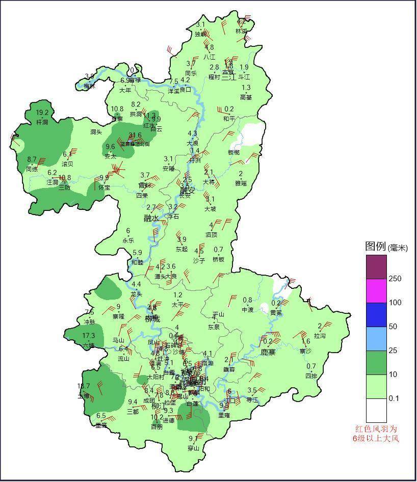 柳州市2025年9月24日7时至25日7时累计雨量和极大风实况图威贤配资