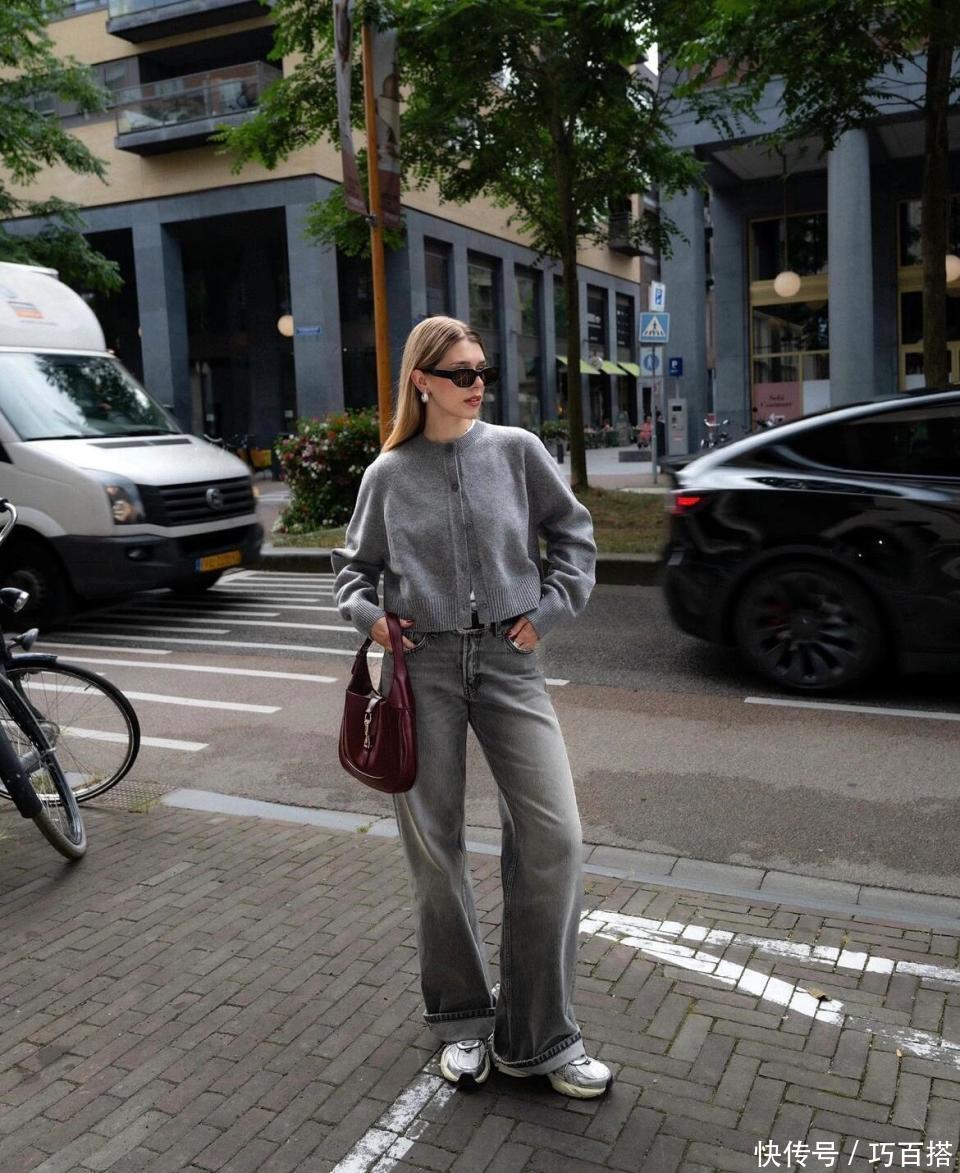 选择博主身上这类中性灰针织开衫时,优先考虑浅色系运动鞋效果最佳,用它提亮整体色调,简单又时髦,既不沉闷单调也不娇奢张扬亿策略,日常外穿氛围一绝。