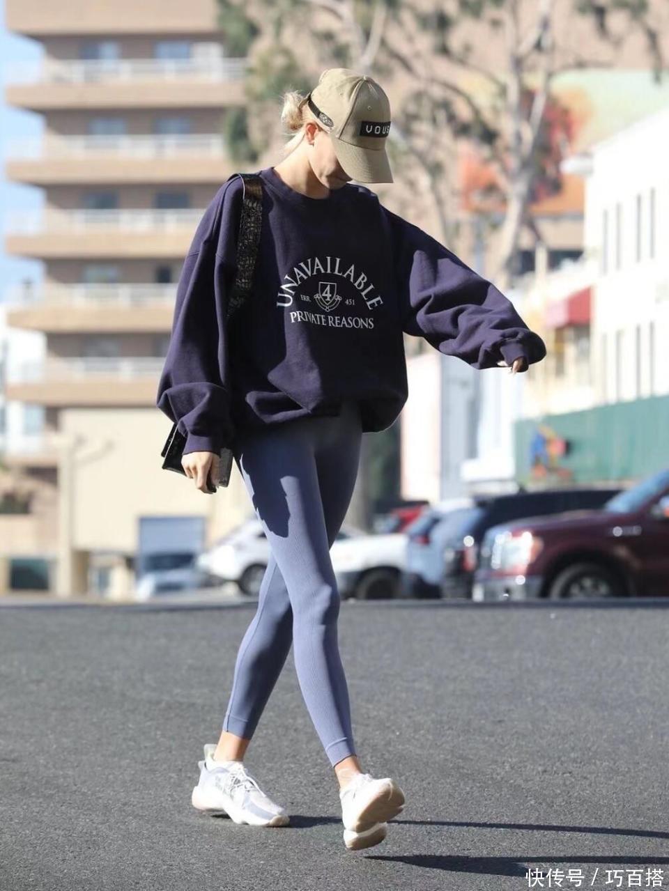 为了保证两件单品搭配可以呈现出高级美感,紧身瑜伽裤必须安排上,相较于搭配卫裤、牛仔裤、西装裤,搭配瑜伽裤效果最nice,能秀美腿还能保证干净利索,视觉效果鲜明又独特,高级感拉满。