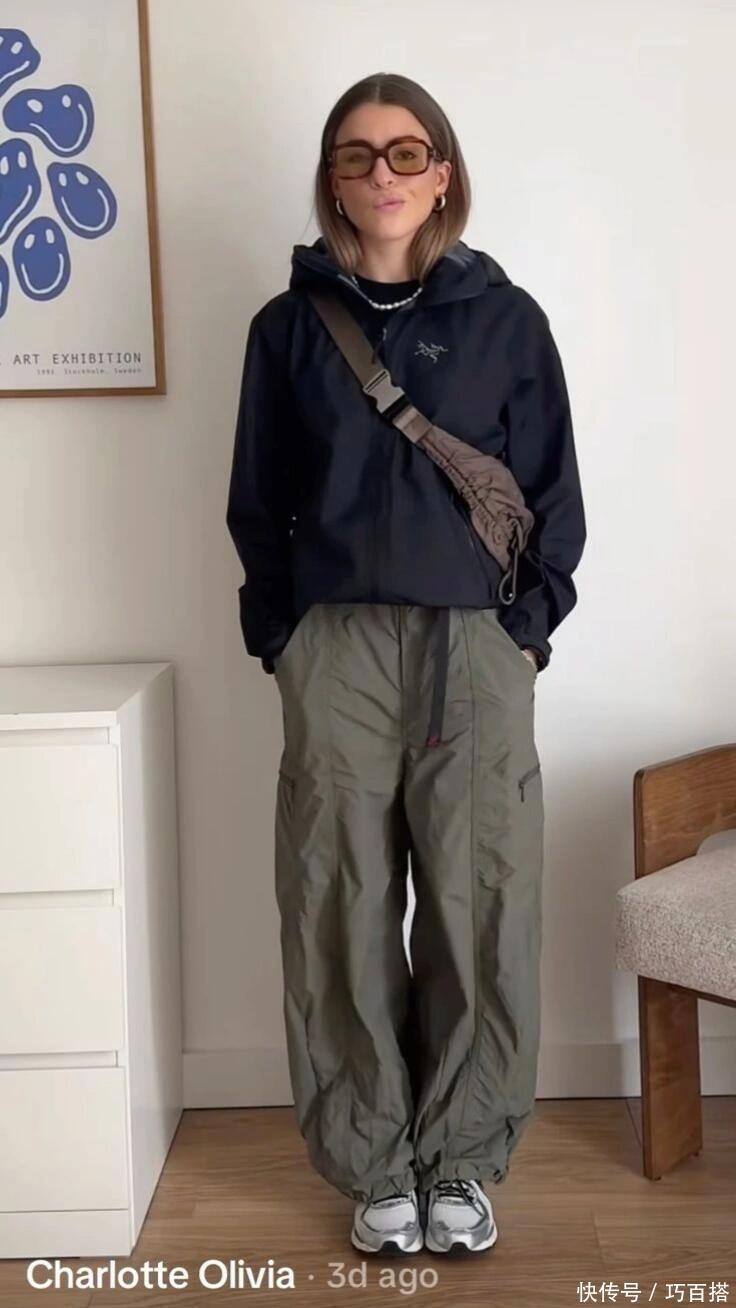 应对早中晚温差大家还可以选择冲锋衣,防风效果一绝又绝对时髦帅气,中性效果男女通吃,和运动鞋没有性别之分高度相似,两者搭配和谐统一,既有个性又有共性,美得非常高级。