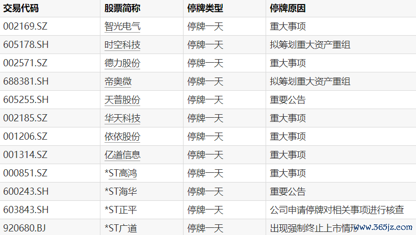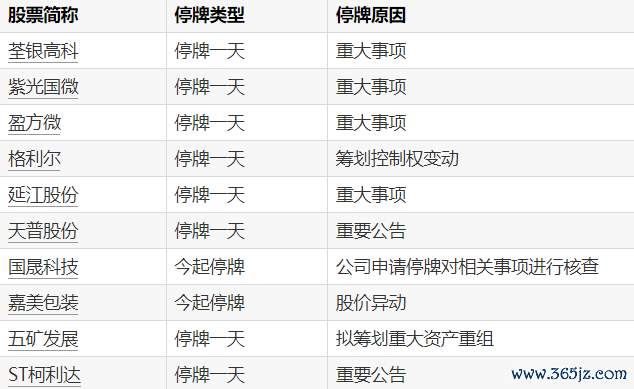 A股停牌提示:10股今日停牌A股停牌提示:10股今日停牌